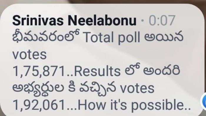 Rigging hapoened in bhimavaram cobstitution polled number of people and results number are different