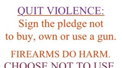 By signing this petition, you personally pledge to practice non-violence, to personally refuse to buy, own, or use a gun.