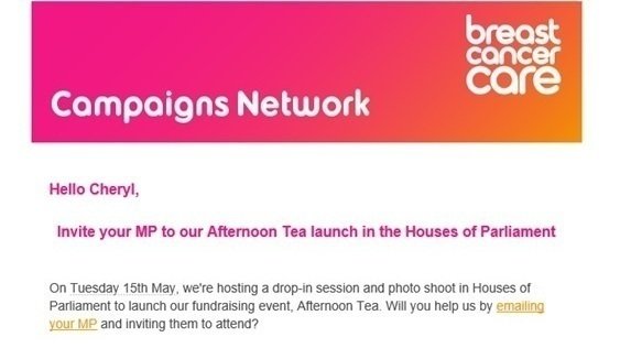 If you would like your MP to be involved with Breast Cancer Care's event next week, you can access the short form direct on the following link.