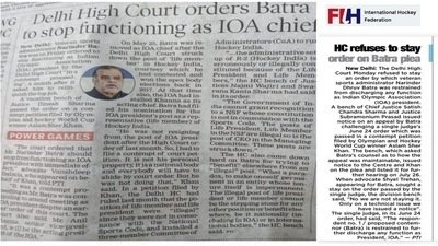 More importantly at a time when the President of any sporting organization must be seen as being totally impartial, the findings of the court have confirmed that he has still had involvement in hockey in India.