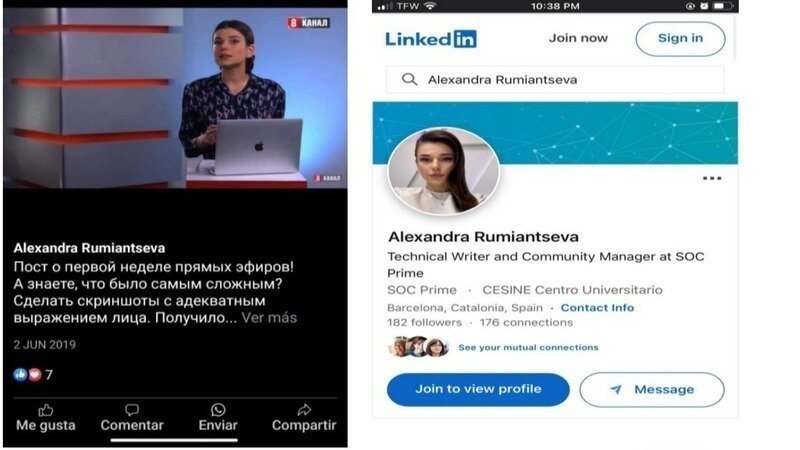 We found her real LinkedIn profile: Alexandra Rumiantseva. What stands out about this profile, which seems much more authentic, is that she has no work experience at the major crypto projects she claims on her likely fake profile. Alexandra appears to come from Santander and is of Ukrainian origin. This is also noteworthy.