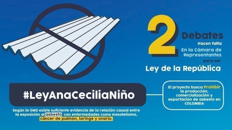 Mañana se dará uno de los dos debates necesarios que debe superar el proyecto de ley Ana Cecilia Niño en la Cámara de Representantes. Invitamos a todos los que quieran entender la situación y el riesgo que corre la prohibición del asbesto en el siguiente comunicado.