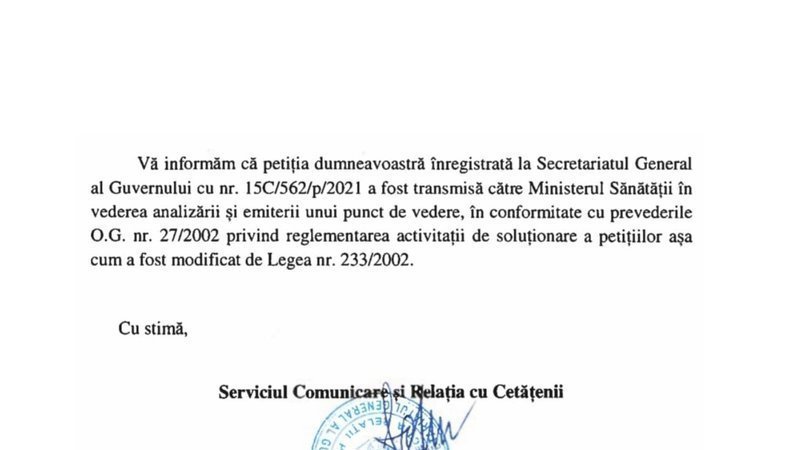 In urma informatiilor care au circulat in mediul online cu privire la restrangerea unor drepturi in cazul nevaccinarii, am considerat ca trebuie sa petionam Guvernul si Ministerul Sanatatii.