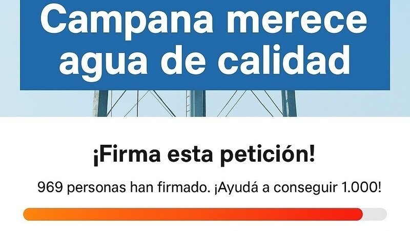 Aggiornamento sulla petizioneCampana merece agua de calidad: pedimos que el Concejo trate la ordenanza para controlarlaLlegamos a 50 firmas de Campanenses en 12hs