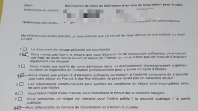 Ajout d’un motif 8 pour l’avis Scac sur les refus de visa étudiant pour les non européens