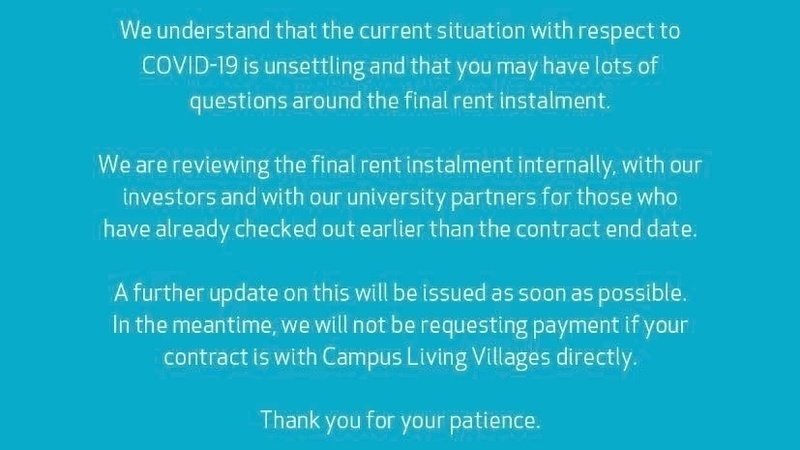 Petition updateCampus Living Villages - allow students out of their last payment due to corona lockdownCampus Living’s Response