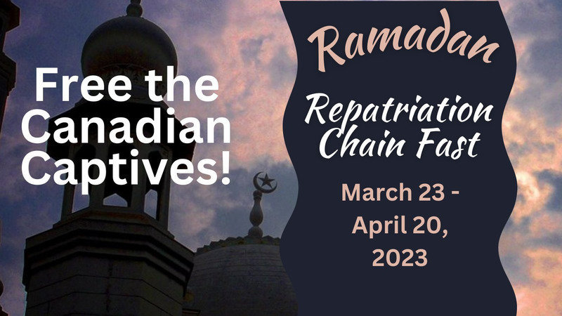 Please pick a day to fast in support of immediately freeing and bringing home dozens of arbitrarily detained Canadian Muslim men, women, and children, including the longest-held detainee, Jack Letts. Email your date and name to tasc@web.ca, and learn more details at http://homesnotbombs.blogspot.com/2023/03/ramadan-repatriation-chain-fast-to-free.html All of the detainees are illegally held without charge in northeastern Syrian jails and prison camps under conditions the United Nations describes as meeting the “threshold for torture, cruel, inhuman, and degrading treatment under international law.” Justice Henry Brown of the Federal Court stated in December: “Canadians are dying or at risk of dying every day this matter is adjourned.” Every moment of delay increases the risk for the children, men and women.
