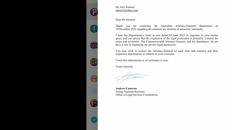 Will the Attorney General or the department explain to the Australian public why Australia is the only Commonwealth and Western civilised nation on Earth that upholds the Law of Advocates Immunity? when;