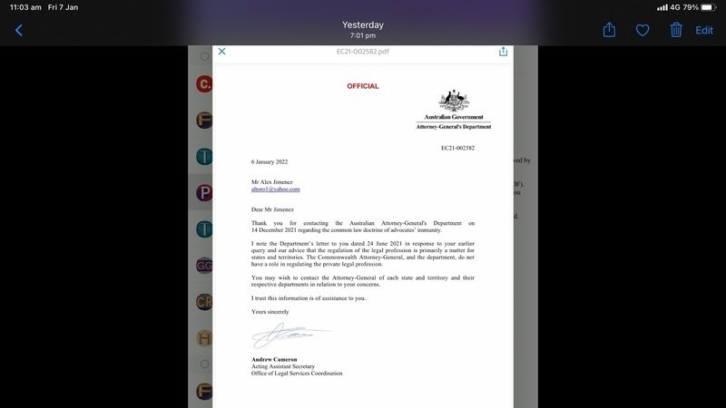 We are in the process in seeking the abolishing of the Law of Advocates Immunity. Will the Attorney General or the department explain to the Australian public why Australia is the only Commonwealth and Western civilised nation on Earth that upholds the Law of Advocates Immunity? when;