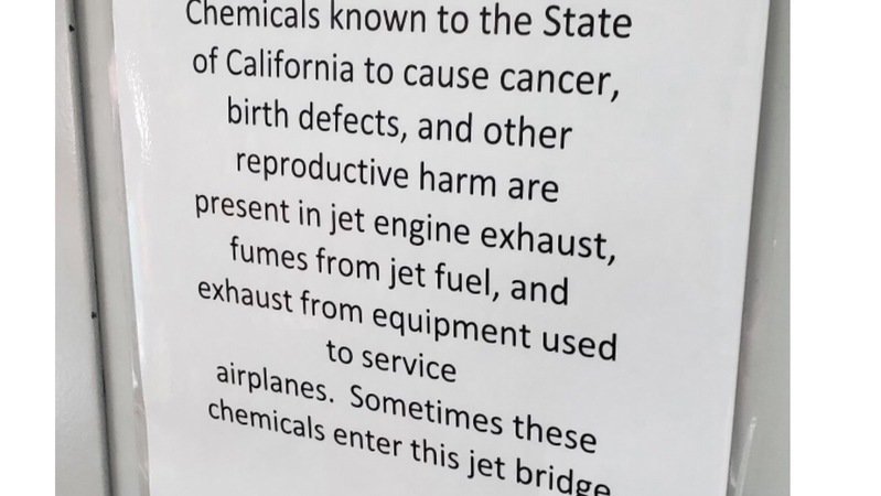 Exhaust fumes from ground equipment and other aircraft entering cockpits and aircraft cabins while aircraft are on the ground is a regular occurrence and as the photo from a jet bridge at at Californian airport (above) shows, these contaminants are extremely harmful to human health too.
