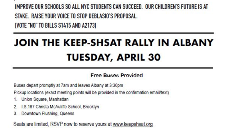 Petition updateKeep SHSAT as the sole specialized high school admissions criterionFree Keep SHSAT Trip to Albany