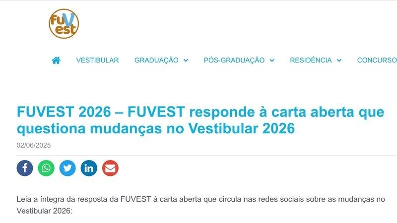 Entretanto, ainda é de extrema importância que pressionemos pela liberação antecipada do edital e dos guias do Vestibular 2026. Ainda existem dúvidas relacionadas à primeira fase da prova — com a adequação da prova às áreas do conhecimento da BNCC — e à distribuição de pesos para cada disciplina no que diz respeito ao cálculo da nota final da prova, visto que, observando a grade de correção divulgada pela Fundação no dia 30/05, a redação passa, agora, a valer 30 pontos. Nesse sentido, é fundamental que tais documentos sejam liberados o mais rápido possível, de modo que se possam garantir a transparência e a clareza quanto às alterações anunciadas, além da preservação da saúde mental dos candidatos.