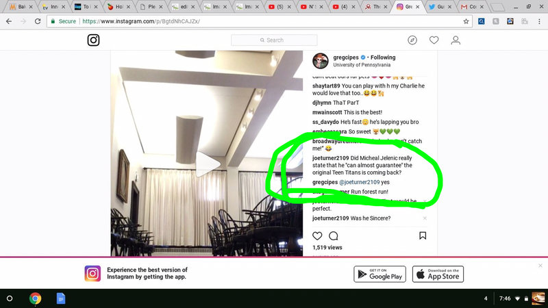 I was gonn put this on the Previous Update, but I couldn't put it up. But here is a screenshot of Greg Cipes Instagram where he confirms what was discussed at the TTG panel...