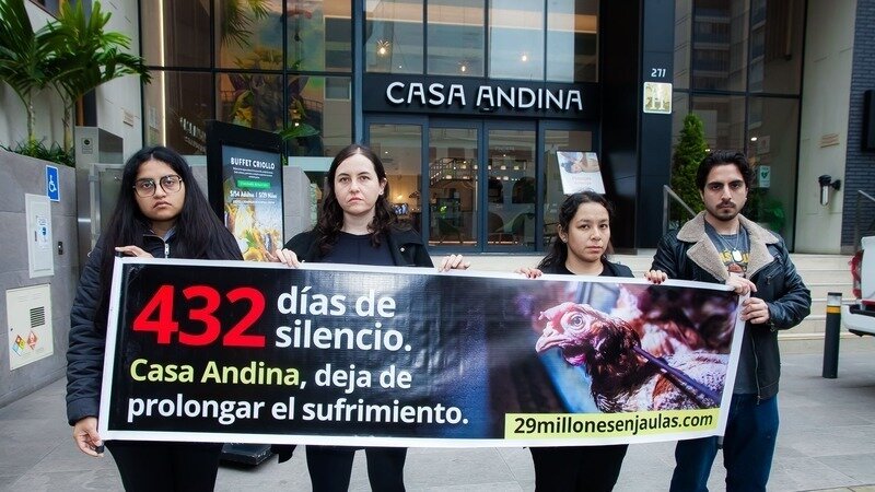 Millones de gallinas siguen encerradas en jaulas, y Casa Andina lleva 465 días en silencio ignorando su sufrimiento al no tener una política libre de jaulas.
