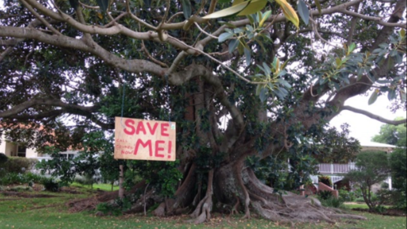 Along with local indigenous elders we are standing by, camping out, chaining onto the Fig as an act of civil disobedience.