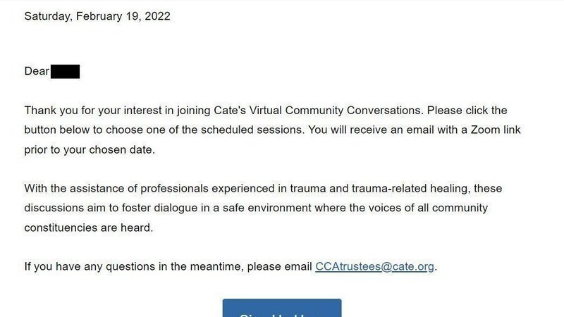 Cate has set dates for virtual community conversations, opportunities for the voices of alumni, parents, students and other community members to be heard regarding these issues that have affected so many for so long: