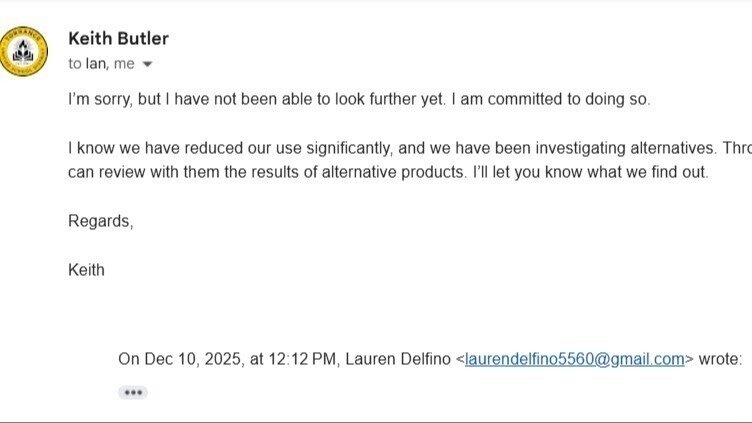 A couple small wins this afternoon! I have the support of a few on the district board and I have 2 commits that the use of Round-Up will be stopped until they research and find a safter alternative. That said, it's very likely that they research and come back to me with the same "it's safe when dry" story. So I don't think this fight is over - please keep sharing and speaking up. I genuinely believe the help from all of you has allowed me to get this far. I will share the email screenshots in this update and following updates.