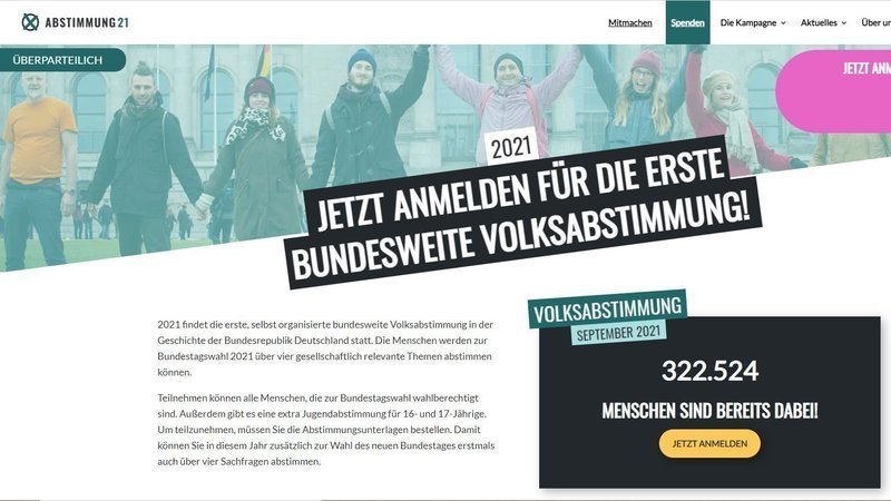Der Erfolg der Volksabstimmung parallel zur Bundestagswahl steht und fällt mit der Beteiligung. Je mehr mitmachen, um so wirkungsvoller werden auch die Ergebnisse der Abstimmung sein. Mit ABSTIMMUNG21 gibt es eine Chance, die Grünen wieder davon zu überzeugen, dass die direkte Mitsprache von uns Bürger*innen durch Volksabstimmung von der Politik gebraucht wird und von uns gewollt ist.