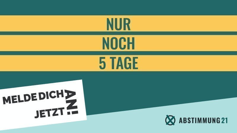 während sich die Grünen von der Volksabstimmung auf Bundesebene in den letzten Monaten distanziert haben, organisiert ABSTIMMUNG21 die erste Abstimmung einfach selbst. Melde dich jetzt an - nur noch bis zum 05.09.!
