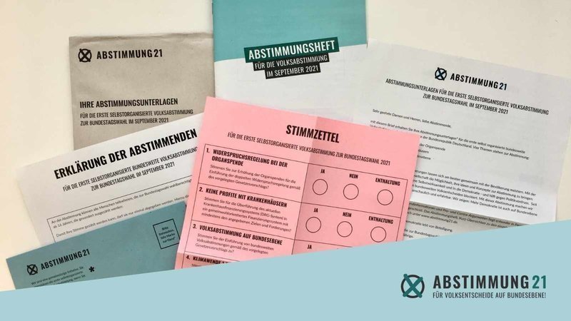 ABSTIMMUNG21 e.V. setzt sich für Volksabstimmungen ein. Mach auch Du noch heute mit, melde Dich zur Abstimmung an und stimme für die Einführung der Volksabstimmung auf Bundesebene! Wir brauchen Deine Unterstützung - Jetzt Abstimmungsunterlagen bestellen - Nur noch heute möglich