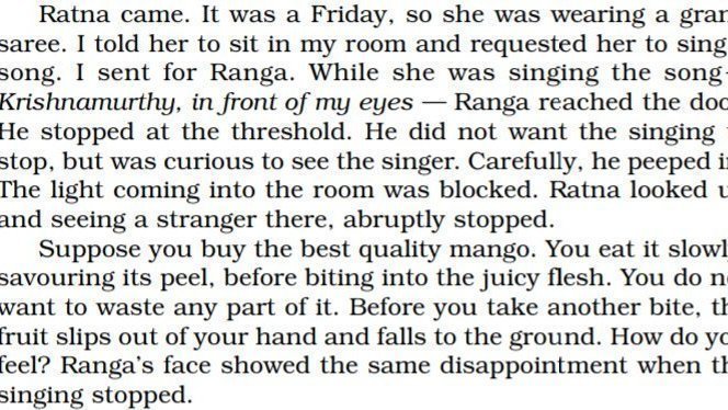 Whatever the writer's intentions may have been with their piece, we can't ignore that the chapter encourages pedophilia. Ranga is a 28 y/o man who comes to his village after completing his studies. The narrator is looking to arrange his marriage, and does so with an 11 y/o girl named Ratna. . They get married, 3 years later she's had her first kid who turns two and is now expecting a second one. In addition, through an analogy between Ratna and a mango, the writer encourages objectification as well. Ratna is raped since minors can't consent.