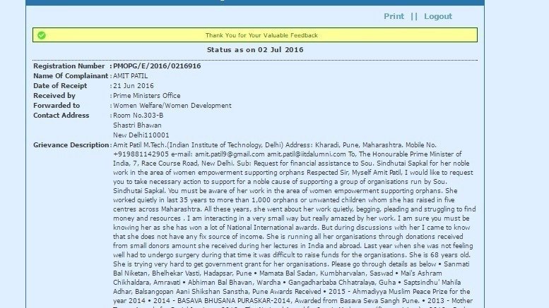 Petition updateApprove Government grant to Sou Sindhutai Sapkal for welfare of women & supporting orphansThanks to Government of India!