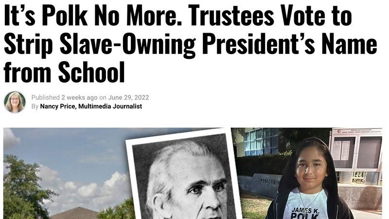 If you can support our choice, please complete the survey and share it. For more information, please visit our website at: www.renamepolkelementary.com