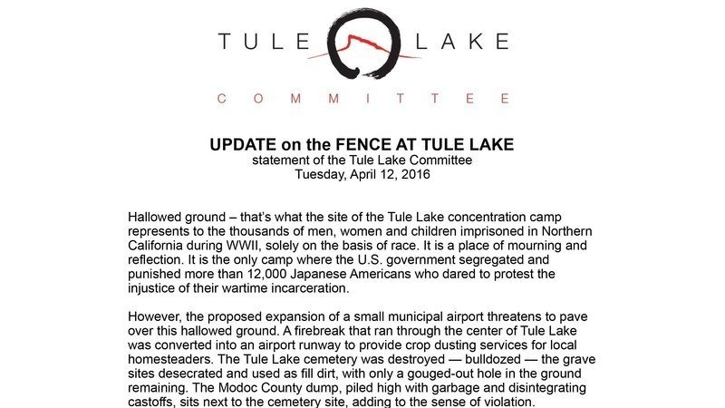 Petition updateStop the Proposed Fence at the Tulelake Municipal Airport, site of the former Tule Lake Segregation Center, CaliforniaThanks to the FAA for opening collaborative discussions with local and government stakeholders