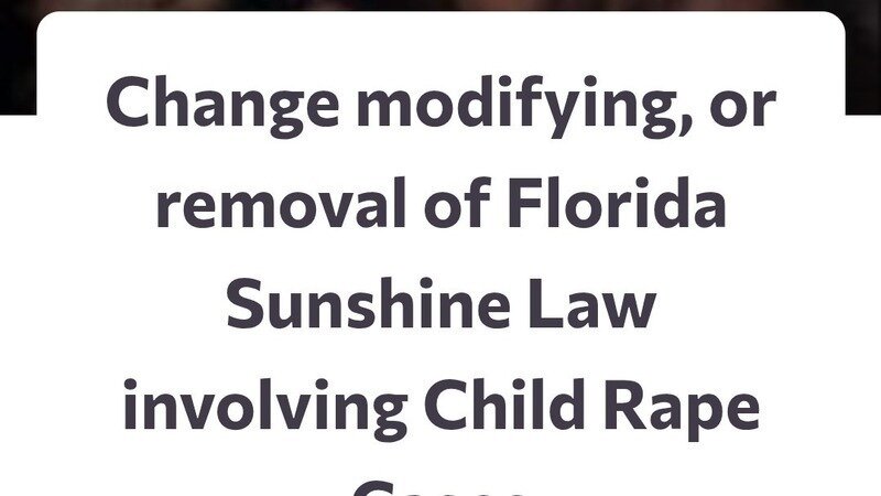 Petition updateChange modifying, or removal of Florida Sunshine Law involving Child Rape CasesPlease sign and share