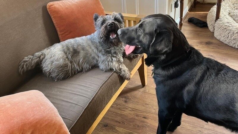 If you have read a bit of my personal story on the petition page about my first dog in Southwold, you will know that my older brother was scared of dogs until we got one. I'm proud to tell you that after overcoming his fears of dogs as a child, he now trains guide dogs, so here is a photo of Newman his guide dog in training visiting his cousin Mungo (my Scotty Westie cross) in Southwold. They love going to the beach together to do zoomies!