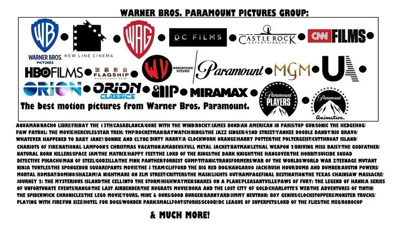 The Warner Bros. Paramount Pictures Group have presented it's old and new movies, even upcoming movies. The motion picture companies that are owned by that company is the renowned but ordinary, Warner Bros. Pictures (It's subsidiaries: New Line Cinema (partnered), Warner Animation Group (for Animated Films), DC Films, Castle Rock Entertainment (then partnered with Paramount-MGM in 2025 because of the pre-1994 library sold by WBP before the partnership), CNN Films, HBO Films. Flagship Entertainment Group (A Chinese Film Studio that made The Meg), Village Roadshow Pictures (which made a deal with Warner Bros. but it was sold in Late 2024) and ofcourse it's new company revived from the Taft vaults, "WorldVision Pictures" that produced films from the Taft and Worldvision libraries and upcoming non-Taft/non-Worldvision films that co-produced with other studios and also partnered with and/or part of Warner Bros. Pictures), Paramount Pictures (It's subsidiaries: Metro-Goldwyn-Mayer (which began a partnership with Paramount Pictures and Amazon Studios bids it's 24% stake with Paramount serves a 75% stake), Castle Rock Entertainment+ (which partnered after Warner Bros.), Orion, Orion Classics (Independence and Foreign Films), LightWorkers (Christian Films), EON Productions (A British Studio that made the James Bond franchise), American International Pictures (a revived version of the old AIP), Paramount Players, Miramax (JV with beIN Media Group; it works on countless films and series for standalone, Warner Bros., Paramount and/or MGM), BET Films (providing films from BET Networks), CMT Films (for CMT), Nickelodeon Movies (Nickelodeon's film studio that made it's films from Nickelodeon, Cartoon Network, Hanna-Barbera and MGM Animation films for Warner Bros., Paramount and/or MGM), MTV Entertainment Studios (MTV's production studio that made it's films and series for Warner Bros., Paramount and/or MGM) and MTV Documentary Films (produces documentaries from MTV for Warner Bros., Paramount and/or MGM). The best motion pictures that WBP made including A Nightmare on Elm Street, Casablanca, Top Gun, PAW Patrol: The Movie, Bonnie and Clyde, A Clockwork Orange, The Poltergeist, Harry Potter, Batman, The Godfather, Space Jam, Highwaymen and more. Their upcoming films and series were coming soon in theaters and on Paramount+ (after it absorbed HBO Max) and Netflix, even in WBP's networks.