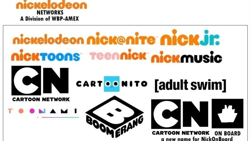 Nickelodeon is a Children's Network from WBP-AMEX Media Networks, dedicated to its childrens programming and cartoons from itself, Cartoon Network, Warner Bros., MGM, Sabella-Dern Entertainment, Hanna-Barbera and Paramount along with their new Hanna-Barbera Studios that made new content for the channel, Nick @ nite is a Nighttime Programming Block from Nickelodeon that aired nighttime programming and its exclusively-produced original programs, it also includes reruns of syndicated comedy series from the early 1990s to mid-2010s and movie broadcasts, Nick Jr. is a Preschool Channel from Nickelodeon that aired preschool programming from Warner Bros., MGM, Sabella-Dern Entertainment, Hanna-Barbera and Paramount along with their new Hanna-Barbera Studios that made new content for the channel, NickToons is a Sister Channel of Nickelodeon, it broadcasts reruns of original animated series from sister network Nickelodeon (known as Nicktoons) along with some other animated shows and feature films for children aged 7 to 11, TeenNick is a Teen's Channel from Nickelodeon. It consists a variety of live-action series inherited from Nickelodeon and TBS, NickMusic is a Music Channel from Nickelodeon. It carries music video and music-related programming from younger pop artists that appeal to Nickelodeon and Cartoon Network's target audience, with some videos edited for content to meet a general TV-PG rating applied across the network's broadcast day, or replaced with a lyric video instead, Cartoon Network is an All-Cartoon Channel from Nickelodeon, It aired mostly children's programming, ranging from action to animated comedy and it targeted children aged 6–14, the channel also aired some Nicktoons including SpongeBob SquarePants and their new Hanna-Barbera Studios that made new content for the channel, Cartoonito is a Preschool Channel from Cartoon Network and Nickelodeon, targeting a preschool audience around two to six years old, Adult Swim is a Mature Channel from Cartoon Network and Nickelodeon, frequently airing adult animation features, mockumentaries, sketch comedy, and pilots from Warner Bros., CBS, Comedy Central, WBP Network, TNT, TBS and MTV along with a late-night variety of singing competition shows, sitcoms (inc. Family Matters and Kenan & Kel even some imported from Nickelodeon and TeenNick), reality shows, game shows, Degrassi, drama shows, talk shows and comedy shows like we saw on ABC, NBC and/or TBS, Toonami is an Anime and Action Packed Channel from Cartoon Network and Nickelodeon, airing Japanese Animation and Action Oriented Animation and it aired on Adult Swim every weekend then half the night we see the regular channel along with NickToons airing it on Tuesday, Friday and Saturday Nights, Boomerang is a Sister Channel of Cartoon Network, dedicated to reruns of shows acquired and produced by both Nickelodeon and Cartoon Network and it now began airing classic animation from the Warner Bros. and Paramount libraries (inc. Warner Bros. Cartoons, Hanna-Barbera, Metro-Goldwyn-Mayer, DePatie-Freleng Enterprises and Ruby-Spears Entertainment) and Cartoon Network on Board is a Cruise Line-Only Channel from Cartoon Network and Nickelodeon (only it shows cartoons from that channel as "NickToons on Cartoon Network" exclusive block on that channel) along with it's Adult Swim Cruise (a.k.a. "[as]Cruise" or "[asc]") late-night programming block formally known as NickOnBoard.