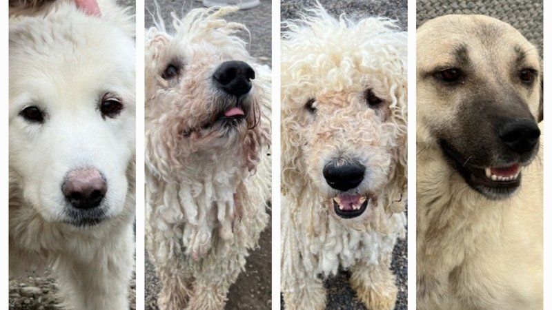 Four of the adult dogs completed their medical treatments and are ready to meet potential adopters today at noon and we’re excited to tell their story. Pickles and Sauerkraut are two male Komondors and became internet famous from our original post. We cannot fully express our gratitude to Rae and her team at the Salon at Loveable Pets for springing into action and grooming these guys for 10 hours upon intake. The boys also received a full medical workup including their neuters, vaccinations, treatment of intestinal parasites, and dental extractions. Our Komondors are looking for special homes that understand the nuances of their breed. Komondors, also known as Hungarian sheepdogs, are livestock guardians whose coat grows into long cords, similar to dreadlocks in humans.