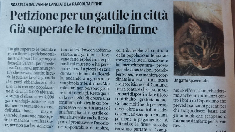 Petition updateChiediamo un Gattile Comunale x la cura,tutela,salvaguardia dei gatti abbandonatiIL GATTILE: UNA STRUTTURA NECESSARIA PER LA SALVAGUARDIA DEI GATTI