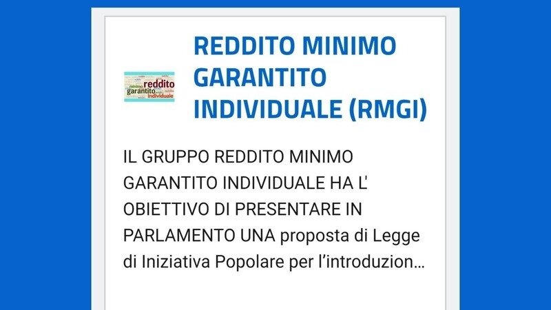 PRIMO . VAI SU GOOGLE E SCRIVI . REDDITO MINIMO GARANTITO INDIVIDUALE SI APRE LA PAGINA DELLA PIATTAFORMA INIZIATIVE POPOLARI . DEVI CLICCARE SULLA PAGINA.