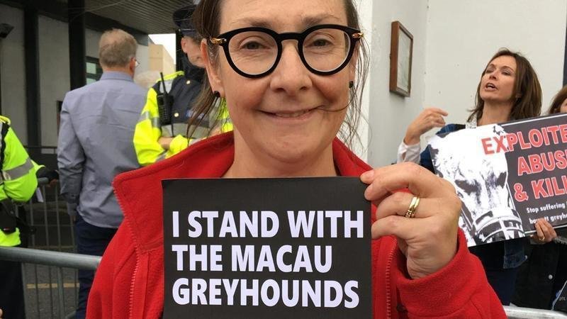Actress and author Pauline Mclynn, who was fantastic at the the protest outside the Irish Greyhound Derby, supporting #SaveTheMacauGreyhounds