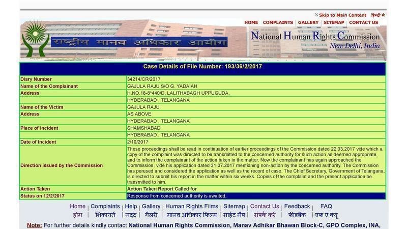 Petition updateSHAMSHABAD LAND HIJACKING - REAL ESTATE FRAUDS - 71 NHRC DIRECTIONS TO TELANGANA GOVT.GOVERNMENT OF TELANGANA NOT SENT REPORT INSPITE OF REMINDERS