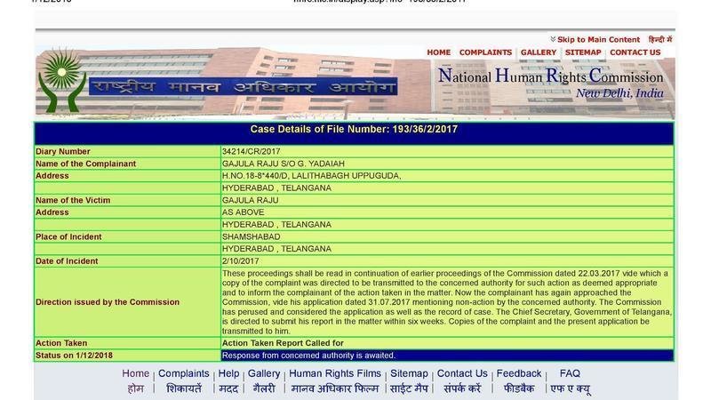 RANGAREDDY COLLECTOR OFFICE STILL NOT SUBMITTED REPORT TO NHRC - DELAY IS ALSO SIGN OF BAD GOVERNANCE IN ADDITION TO COMPLAINT ON BAD GOVERNANCE