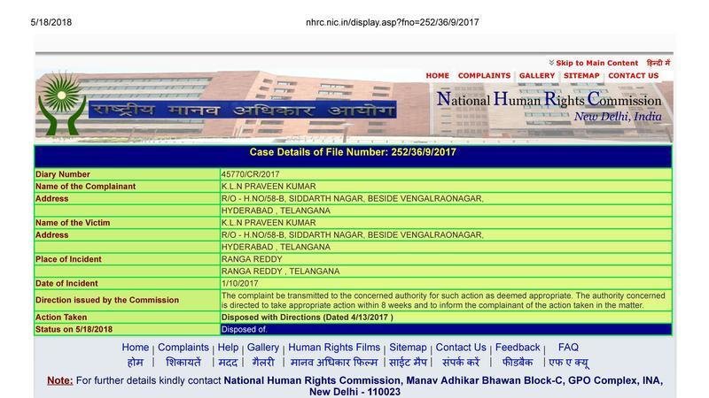 Petition updateSHAMSHABAD LAND HIJACKING - REAL ESTATE FRAUDS - 71 NHRC DIRECTIONS TO TELANGANA GOVT.Telangana Government not responded to NHRC order