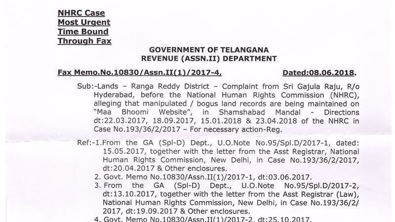 Обновление к петицииSHAMSHABAD LAND HIJACKING - REAL ESTATE FRAUDS - 71 NHRC DIRECTIONS TO TELANGANA GOVT.MEMO FROM SPECIAL CHIEF SECRETARY TO GOVERNMENT, TELANGANA GOVERNMENT