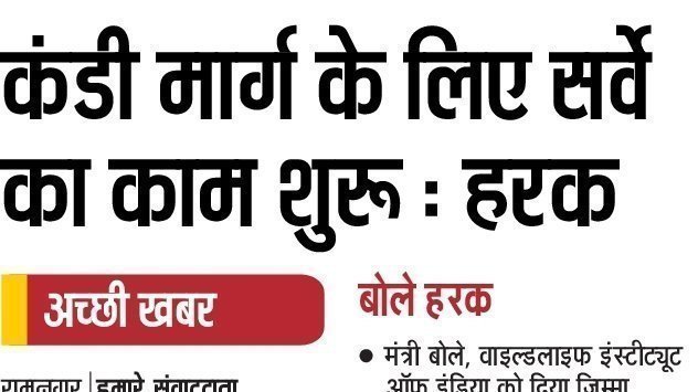 Mr. Harak Singh Rawat, Environment Minister, Uttarakhand has announced construction of highway from Corbett Park by formally handing over survey work to Wildlife Institute of India (WII) at the cost of Rs. 2.5 crores. He also told that Govt is serious in constructing this highway once WII completes the survey.