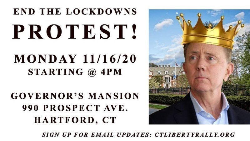 Mon 11/16/20: End The Lockdowns Rally @ Governor's Mansion, 990 Prospect Ave. Hartford starting at 4pm