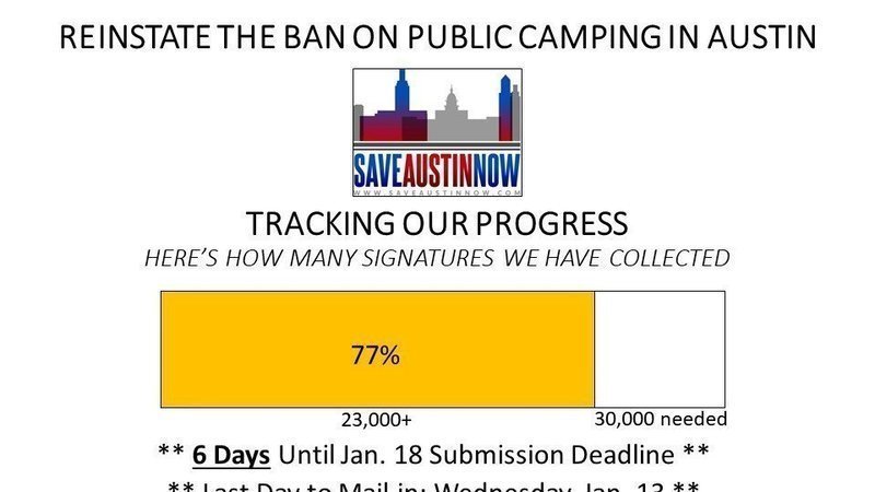 We have 6 days to go before the Jan. 18 deadline to submit our signed petitions to put reinstatement of the camping ban on the May 2021 ballot.