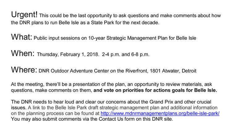 Petition updateCitizens Against the Grand Prix on Belle IsleStrategic Management Plan for Belle Isle Park