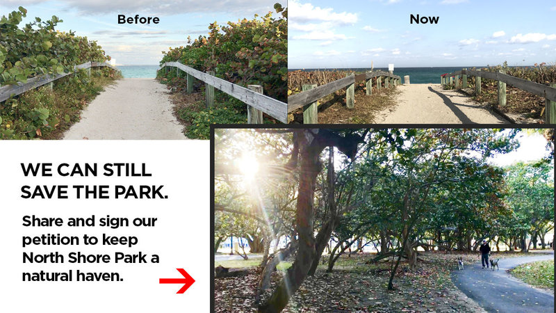 If you have been to the park lately, you also notice that all of the vegetation next to the beach walkway, mostly seagrape, have been excessively trimmed to a third of their size (see pictures for before and after) without any city approval that we know of.