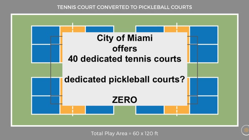 City of Miami has 40 plus dedicated tennis courts. How many dedicated pickleball courts does it provide its residents? Zero.