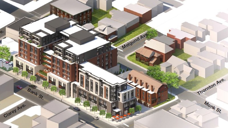 The City of Ottawa is currently considering a proposal for an 8 storey building on the Beer Store site, as well as 6 storeys where the Mr Muffler used to operate on Bank Street.
