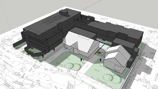 - A massive new development enveloping the diminished heritage properties when the policy requires that new development be respectful in scale and mass of heritage buildings.