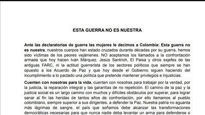 Ante las declaratorias de guerra las mujeres le decimos a Colombia: Esta guerra no