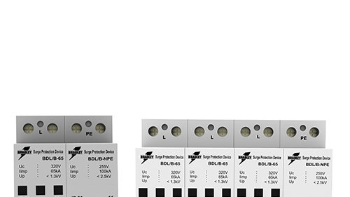 It is available with model name BDL/B/3 NPE and BDL/B/1 NPE. Our SPD has IP 20 degree of protection that protects from shock when touch this SPD. It should have PA 6 housing material. We provide you with 4 and 2 number of module. Our SPD is suitable for 240V system and can withstand up to 320V. Our SPD is very fast as lower than 100nano second for line to neutral & neutral to protective earth. It provides a protection level up to 1.3KV (L-N) and 2.5kv (N-PE). For best and effective protection from lightning your SPD should have above specification. Our Class B SPD comply IEC 61643-1 and UL 1449 standard.